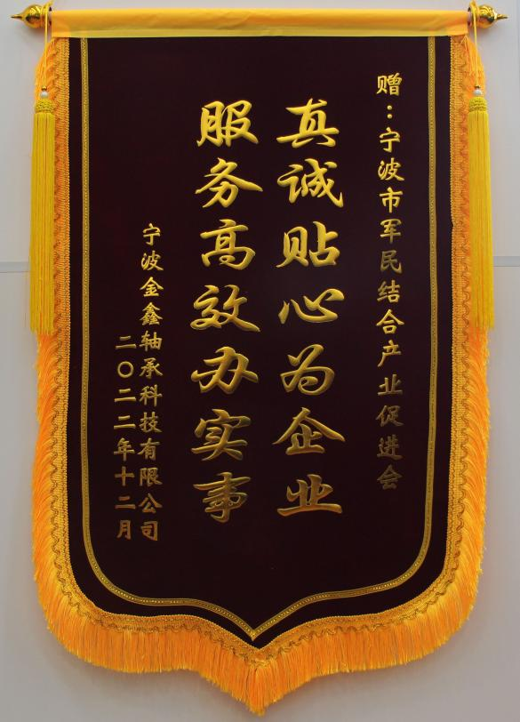 本会理事单位宁波永灵航空科技有限公司、会员单位宁波宏武航空科技有限公司、宁波金鑫轴承科技有限公司、宁波经济技术开发区兴发精密机械制造有限公司、宁波芯合为一科技有限公司也向本会赠送“踔厉奋发促进企业发展,笃行不怠心系国防建设”等五面锦旗,对去年本会在企业(单位)发展过程中提供的各项服务表示充分的肯定。
