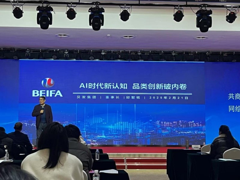 贝发集团董事长邱智铭以“AI时代新认知 品类创新破内卷”为主题,分享了在人工智能时代背景下,企业如何通过品类创新突破行业竞争困境的思考与实践。