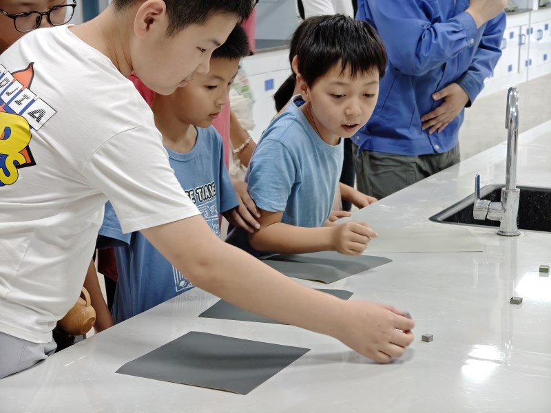 本次活动在中国兵器工业金属材料理化检测中心举行,共设两场次,每场严格控制规模,确保参与体验与教学效果。通过“材料力学之美”“寻找金属的‘指纹’”“善变的化学”及国防主题讲座四大模块,学生分组轮流进入力学、金相、化学三大实验室,抛光试样、观察微观组织、了解化学分析原理,并结合坦克等装备模型和PPT讲解,深入认识金属材料在国防领域的关键应用与前沿需求。