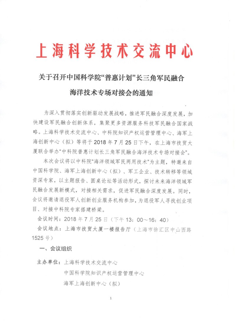 中科院“普惠计划”长三角军民融合