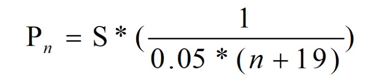 其中初始积分为S分,P代表题目积分,n代表本题解出团队顺序。