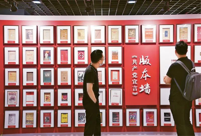 学习社会主义发展史对于坚定信念信仰具有重要意义。图为观众在上海市档案馆外滩馆参观“真理之甘 信仰之源——纪念陈望道首译《共产党宣言》中文全译本100周年主题展”。新华社记者 刘颖/摄