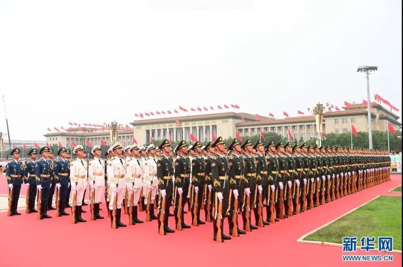 7月1日上午,庆祝中国共产党成立100周年大会在北京天安门广场隆重举行。这是升国旗仪式。新华社记者 庞兴雷 摄