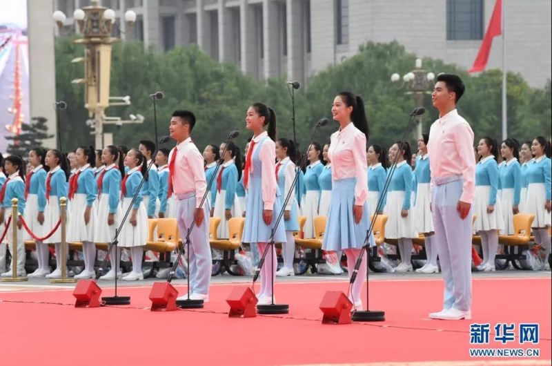 7月1日上午,庆祝中国共产党成立100周年大会在北京天安门广场隆重举行。这是共青团员和少先队员代表集体致献词。新华社记者 翟健岚 摄