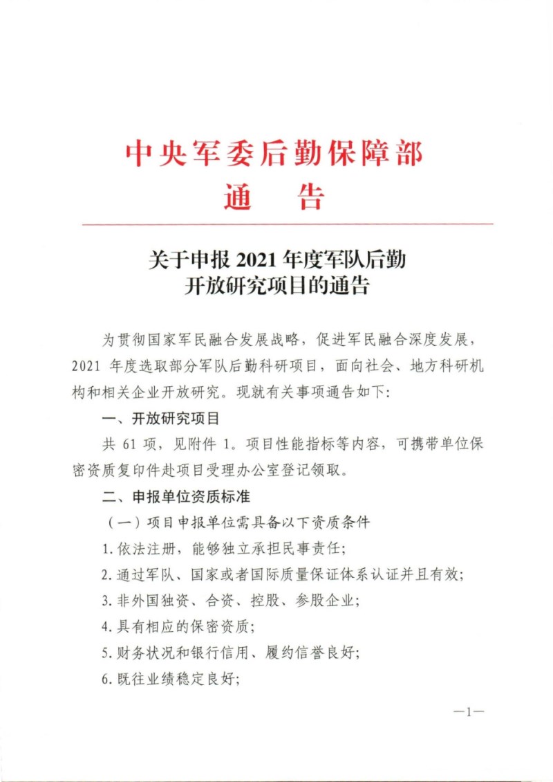 附件1:2021年度军队后勤开放项目研究一览表.pdf