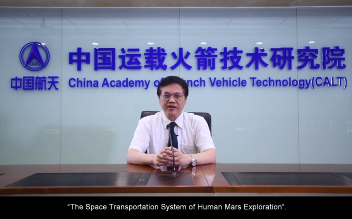 中国航天科技集团一院院长、IAF副主席王小军应邀作了题为《载人火星探测航天运输系统》的大会报告。会上,王小军介绍了中国第一次火星探测任务“天问一号”和“祝融号”探测器的任务概况、总体方案、相关数据和视频,以及中国未来深空探测计划。简要回顾了全球火星探测的发展情况,在此基础上,提出了未来载人火星探测发展路线及任务架构,明确了载人火星探测任务航天运输系统的组成、特点、总体方案与设计参数。