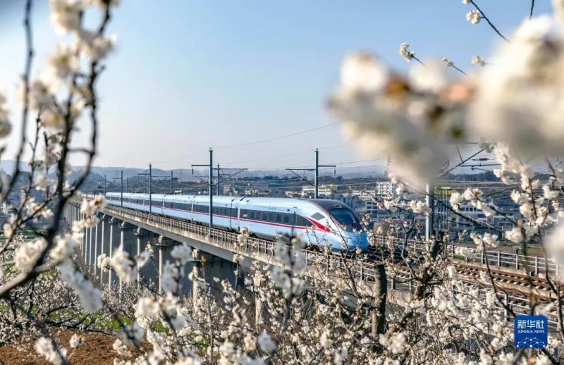动车组列车在成贵高铁贵州黔西段行驶(2022年3月7日摄)。新华社发(范晖 摄)