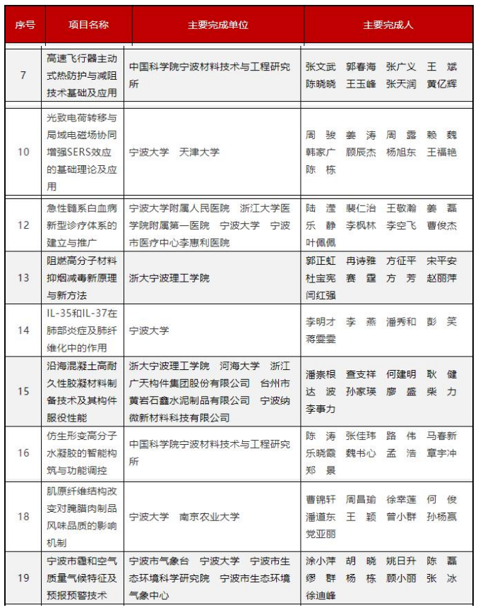 宁波市科学技术进步奖获奖项目