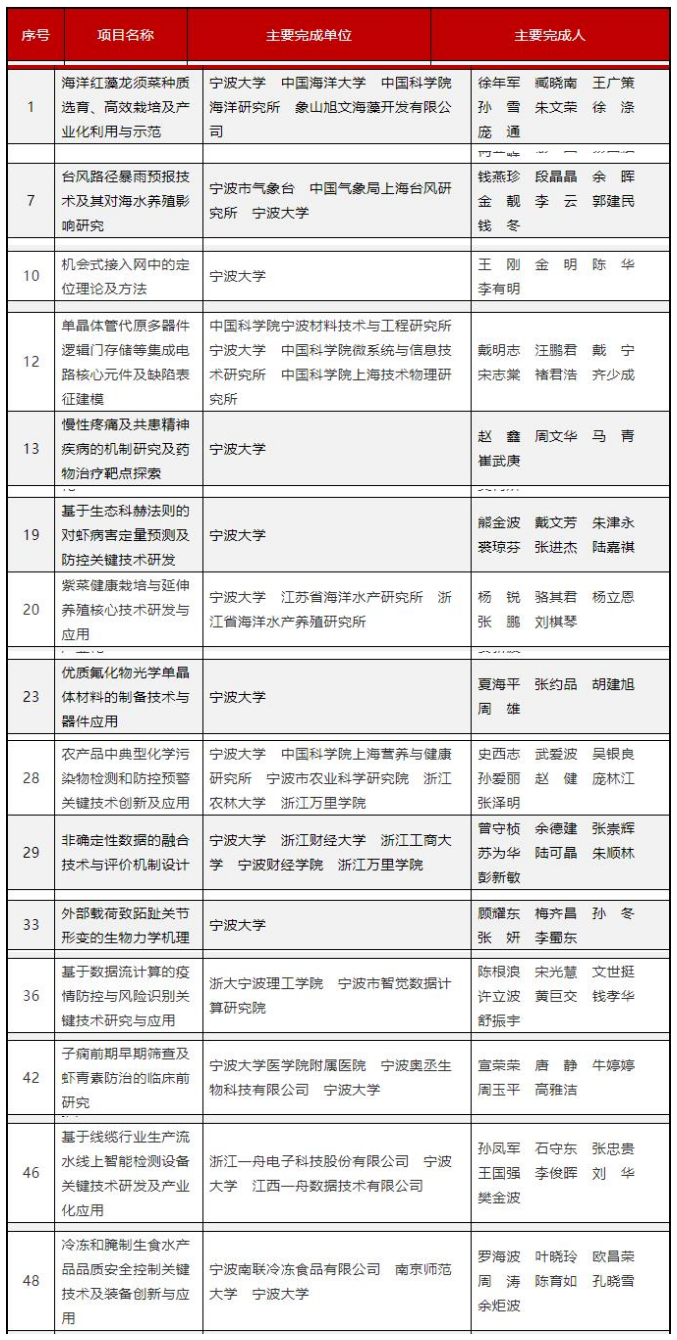 近日,2021年度宁波市科学技术奖获奖名单揭晓。