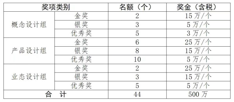 1.概念设计组。面向未量产、未投入市场、未产业化的概念设计作品;可以是概念作品也可以是系统集成设计方案。