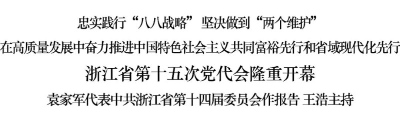 初心似锦照红船,之江潮起再扬帆。6月20日上午,中国共产党浙江省第十五次代表大会在省人民大会堂隆重开幕。袁家军同志代表中国共产党浙江省第十四届委员会向大会作题为《忠实践行“八八战略” 坚决做到“两个维护” 在高质量发展中奋力推进中国特色社会主义共同富裕先行和省域现代化先行》的报告。
