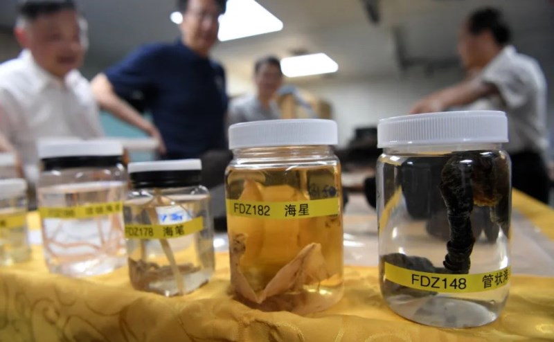 图片3月11日,“探索一号”科考船携“奋斗者”号全海深载人潜水器抵达三亚,科研人员在介绍采集的深渊宏生物、岩石、结核、沉积物样品。新华社记者 陈凯姿 摄