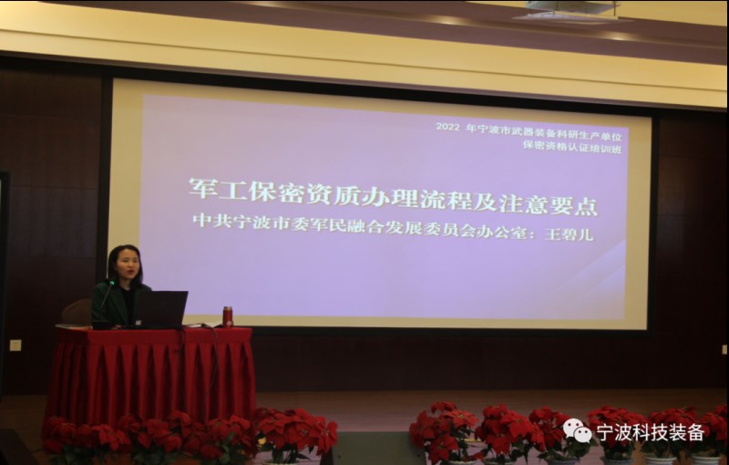 二是2月24日举办了本会会长、副会长单位涉密人员保密知识培训班。培训由本会主办,宁波市航空航天学会、宁波星箭航天机械有限公司协办,邀请宁波市委机要和保密局宣传指导处处长徐爱芳、宁波市委军民融合办国防科工处王碧儿和中国兵器工业集团第五二研究所高级工程师吕绯进行授课。