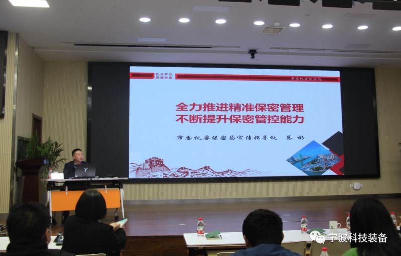 三是3月23日举办了涉密人员保密知识培训班。培训由本会主办,中科院宁波材料所协办,邀请兵宁院高级工程师吕绯和市保密局调研员蔡彬授课,来自宁波市内十余家单位的负责人以及涉密人员共计120余人参加了培训。