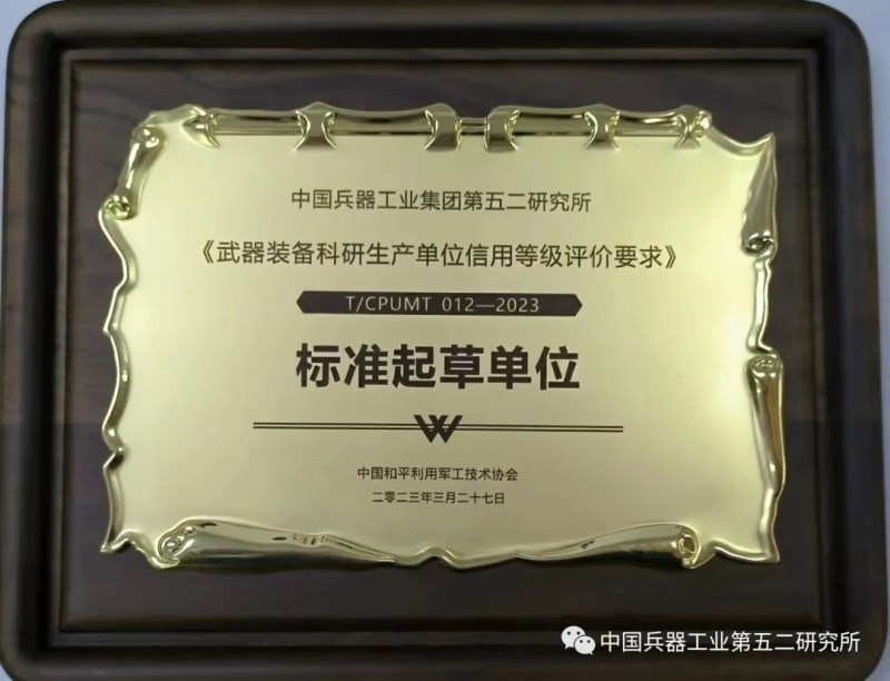近日,在北京召开“武器装备科研生产单位信用等级评价要求”团体标准发布会,五二所作为主要参编单位,出席发布会并获授牌。