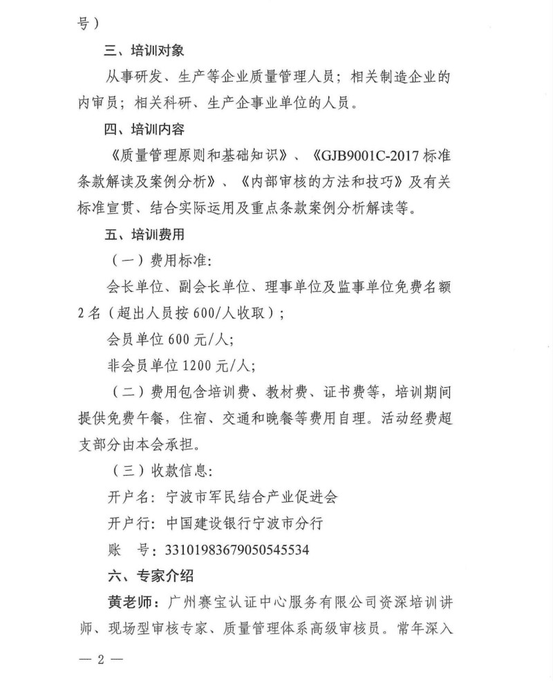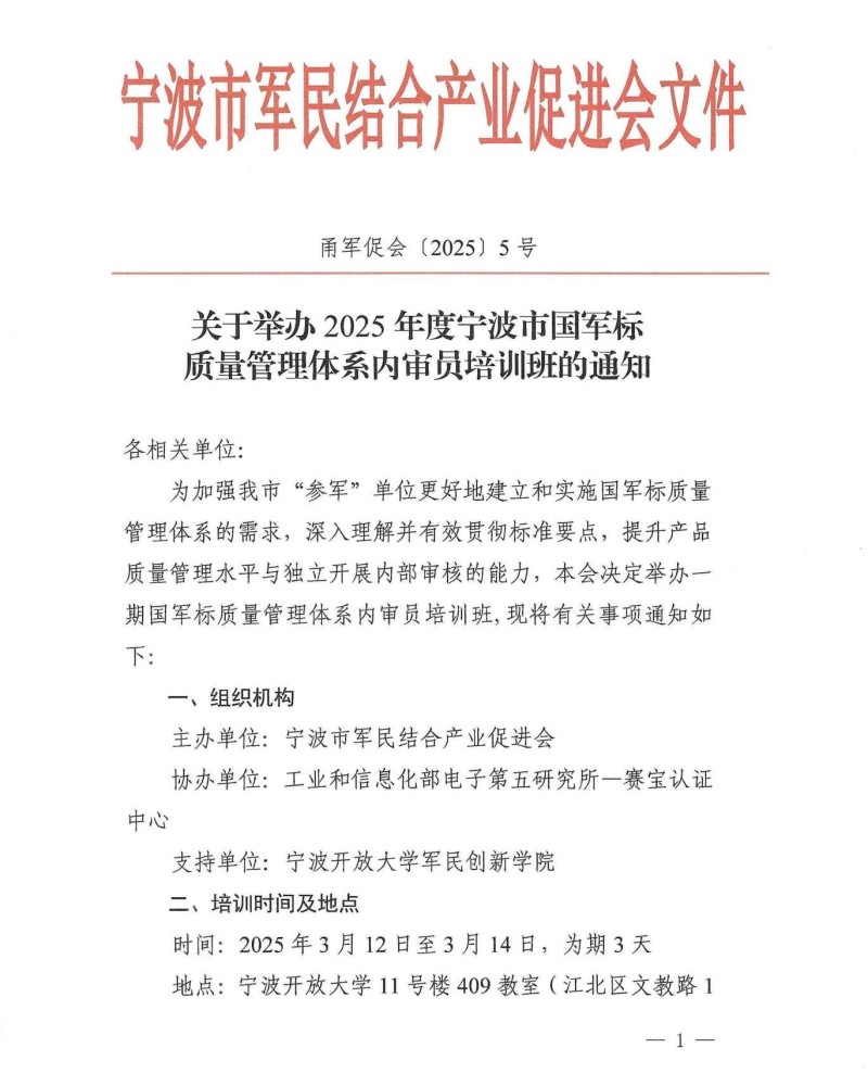 关于举办2025年度宁波市国军标质量管理体系内审员培训班的通知