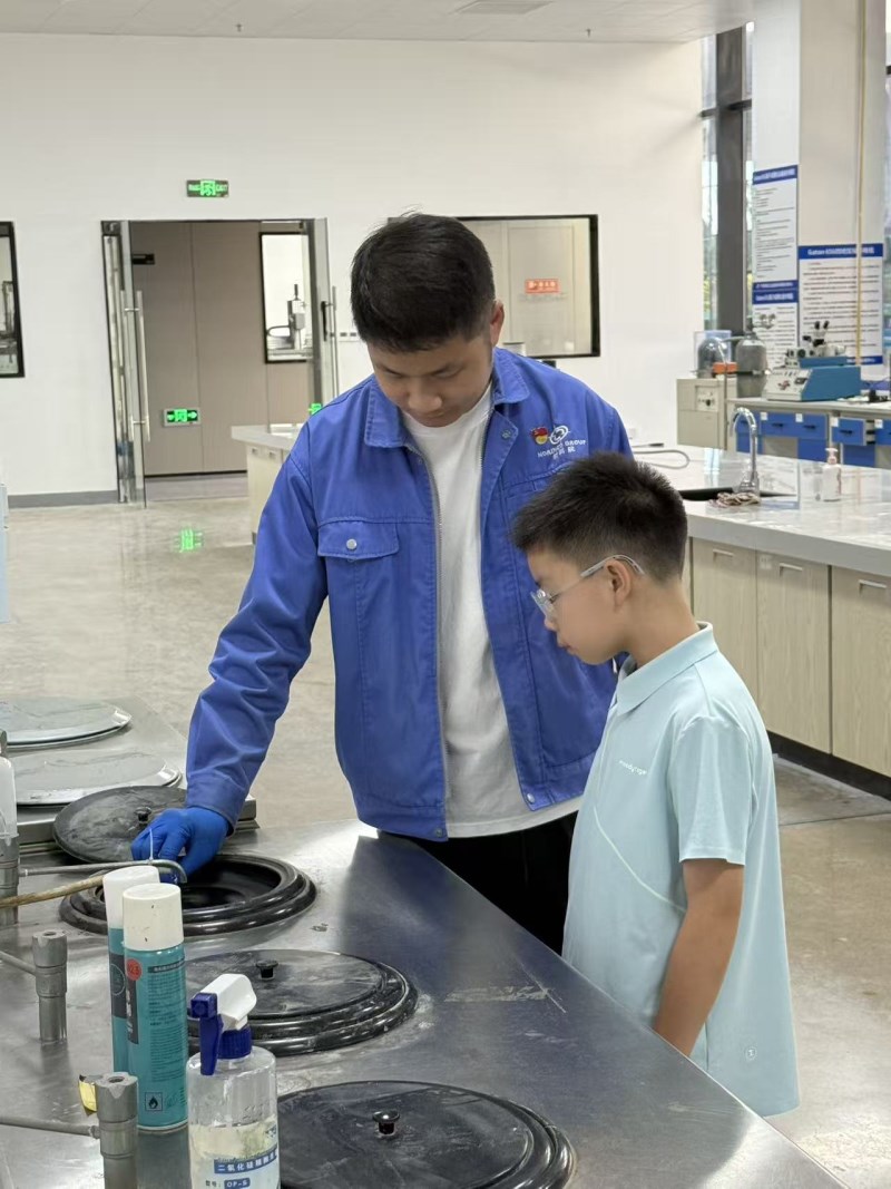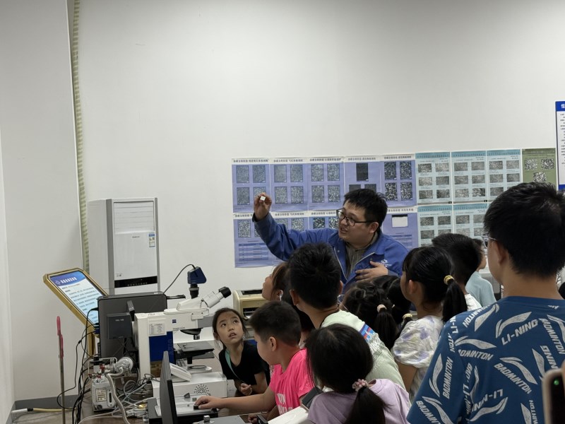 本次活动在中国兵器工业金属材料理化检测中心举行,共设两场次,每场严格控制规模,确保参与体验与教学效果。通过“材料力学之美”“寻找金属的‘指纹’”“善变的化学”及国防主题讲座四大模块,学生分组轮流进入力学、金相、化学三大实验室,抛光试样、观察微观组织、了解化学分析原理,并结合坦克等装备模型和PPT讲解,深入认识金属材料在国防领域的关键应用与前沿需求。